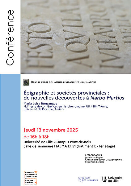Conférence de Maria Luisa Bonsangue : "Épigraphie et sociétés provinciales : de nouvelles découvertes à Narbo Martius"