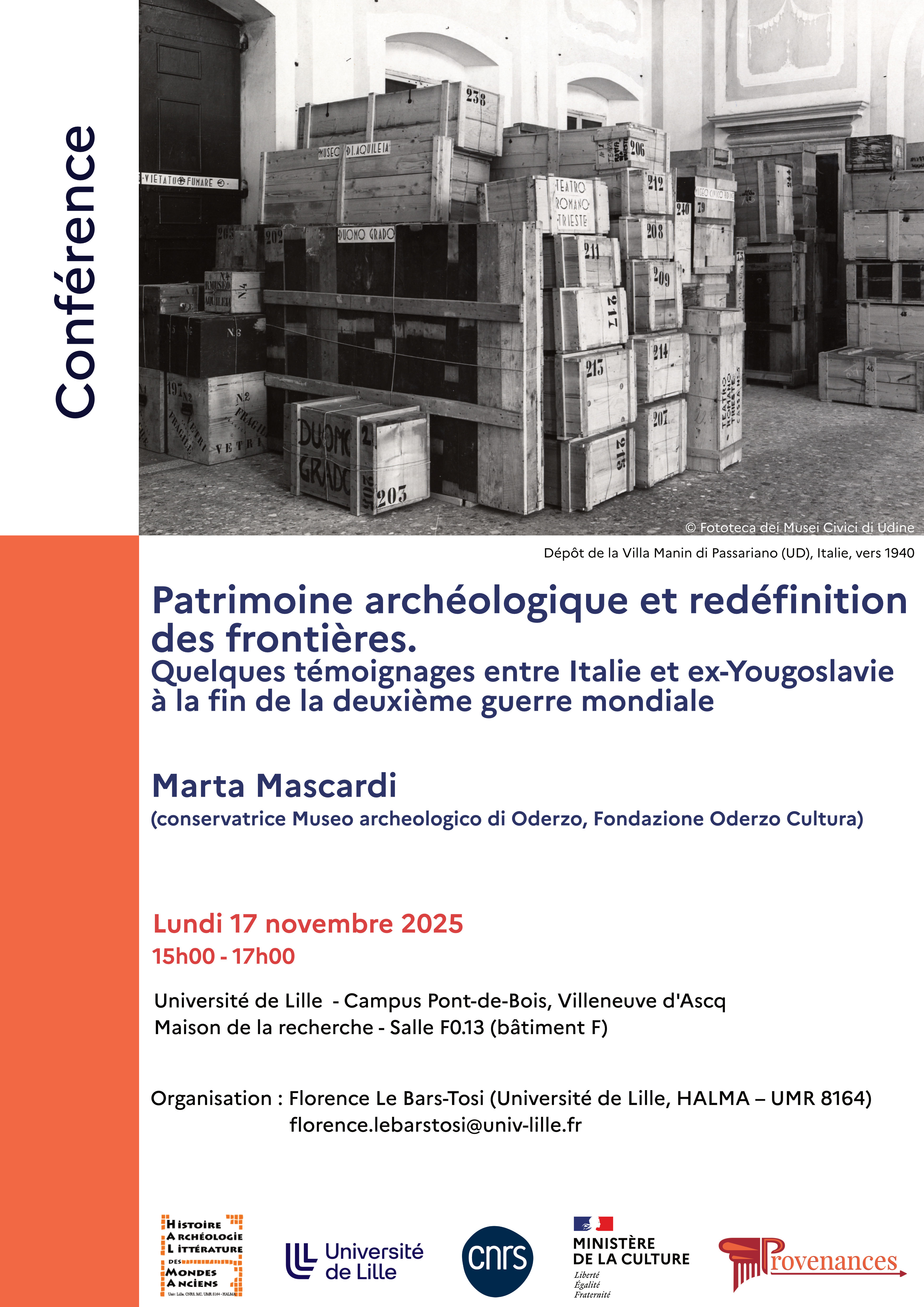 Conférence de Marta Mascardi : "Patrimoine archéologique et redéfinition des frontières. Quelques témoignages entre Italie et ex-Yougoslavie à la fin de la deuxième guerre mondiale"